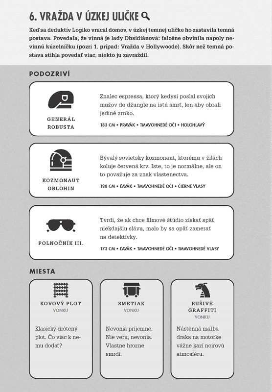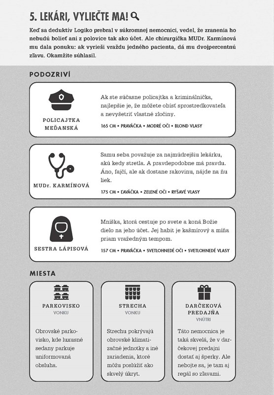 Do elitného klubu detektívov sa dostaneš len s pozvánkou od samotného deduktíva Logika... Štyria mladí pátrači – hekerka Olivia, drsniačka Jake, mudrlant Julius a svetový mačací detektív – sú na najlepšej ceste získať odznak detektíva. Pomôž im chytiť podliakov v sérii záhadných prípadov. Štyridsať záhad plných šifier, bludísk, tipov a spoľahlivých dedukčných mriežok, ktoré preveria tvoj detektívny talent a schopnosť nájsť páchateľa!