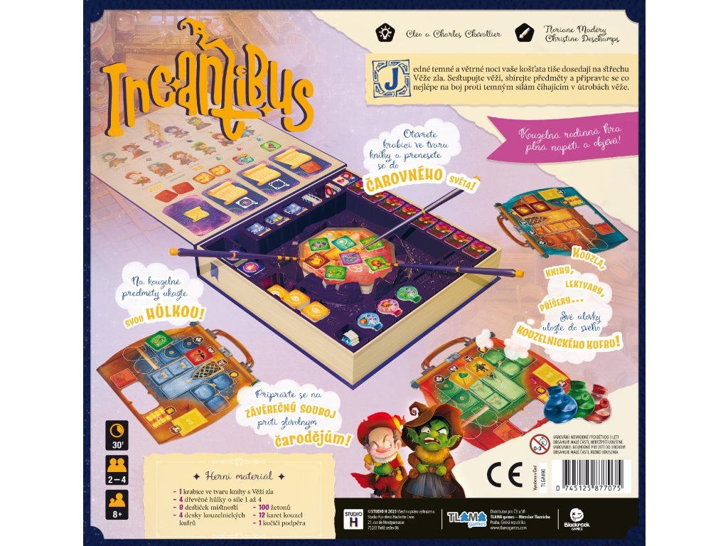 Incantibus je svižná a originálna dosková hra pre 2-4 hráčov, ktorá kombinuje zber predmetov, rýchle rozhodovanie a súboje s príšerami aj čarodejníkmi. Každý hráč má svoj kúzelnícky kufor, do ktorého zbiera zbrane, ingrediencie, lektvary a ďalšie žetóny. Pomocou kúzelnej paličky sa snaží získať tie najlepšie predmety skôr ako ostatní - ale pozor, ak sa viac hráčov zameria na rovnaký žetón, rozhoduje sila prútika!
