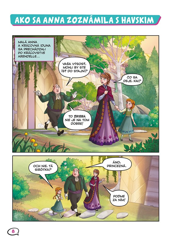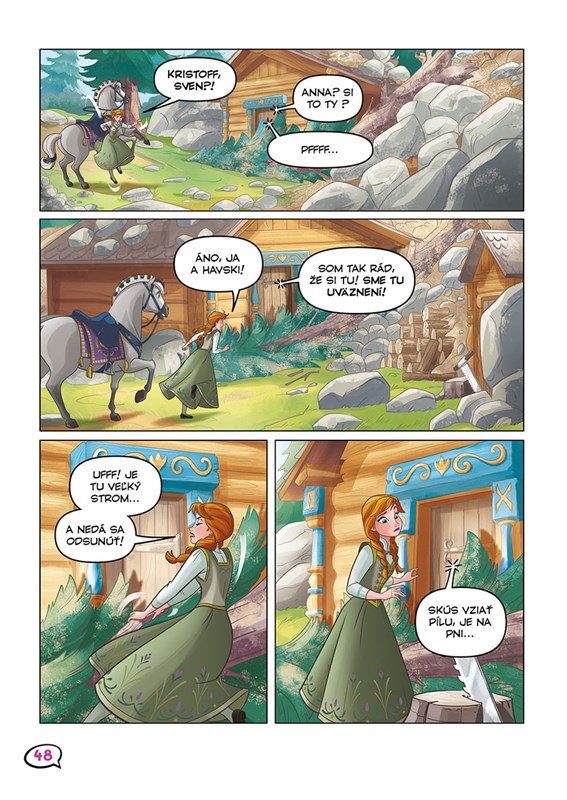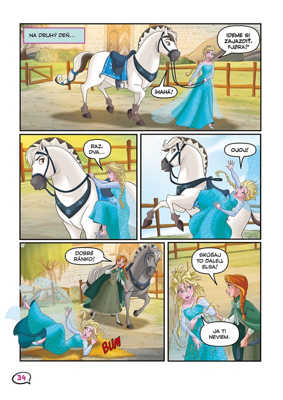 Anna s Elsou milujú kone a jazdu na nich! Preto sme pre vás pripravili novú knižku komiksových príbehov, v ktorej sa dozviete, ako arendellské princezné prišli k svojim koňom a aké príhody s nimi zažili. Často to boli zábavné zážitky, niekedy aj napínavé, ale vždy sa skončili dobre! Nasadnite do sedla, dobrodružstvo sa začína!