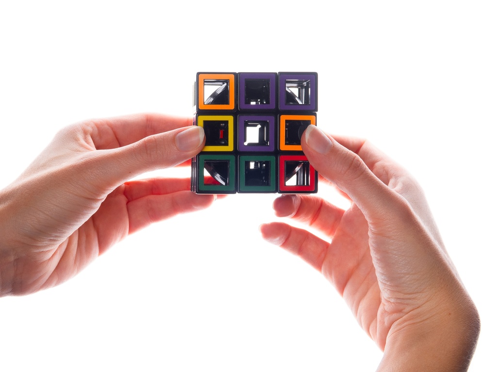 Moderný hlavolam. Zoraďte jednotlivé farebné časti do jednotliateho celku.