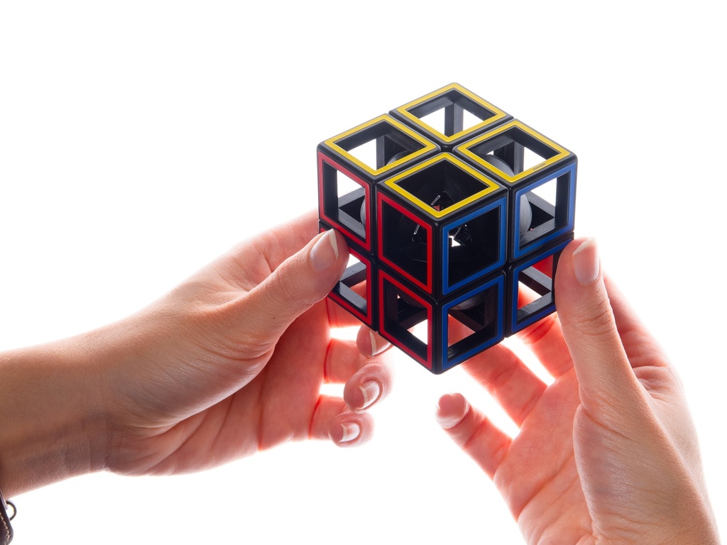 Moderný hlavolam. Zoraďte jednotlivé farebné časti do jednotliateho celku.